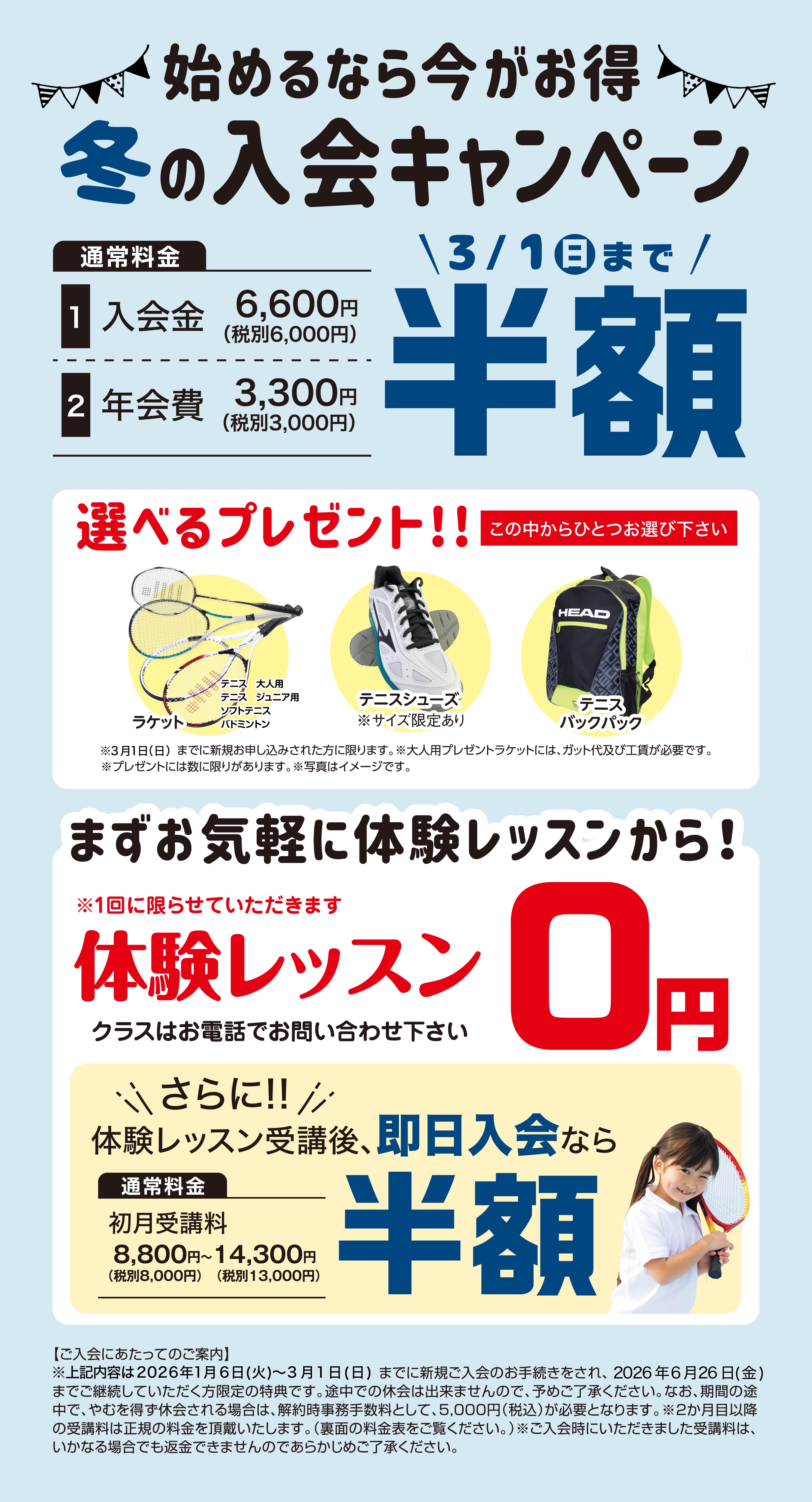 シューズ・ラケット無料レンタル